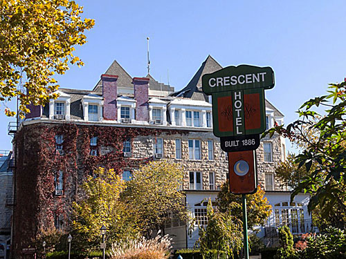 Kể từ khi được xây dựng vào năm 1886, khách sạn Crescent đã phục vụ một số mục đích: khu nghỉ dưỡng sang trọng, nhạc viện cho phụ nữ trẻ, trường cao đẳng. Nhưng dấu ấn kỳ lạ nhất trong lịch sử của nó đến vào năm 1937 khi nó có một chủ sở hữu mới, Norman G. Baker. Baker là một nhà phát minh triệu phú, người quyết định đóng giả làm bác sĩ (mặc dù không được đào tạo y tế) và biến khách sạn thành một bệnh viện có thể "chữa trị" ung thư. Cuối cùng anh ta đã được tìm thấy và chạy ra khỏi thị trấn, mặc dù các báo cáo nói rằng tinh thần của anh ta đã tìm được đường trở lại trang web và cũng tìm thấy một số công ty thế giới khác. Khách sạn Crescent hiện đang hoạt động được cho là bị ám bởi ít nhất tám hồn ma, từ một cô bé năm tuổi đến một người đàn ông có râu mặc quần áo thời Victoria.