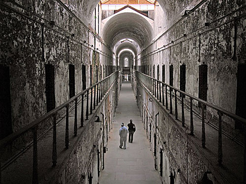 Tòa án Nhà nước phía đông giống như lâu đài đã giam cầm một mình ở cấp độ mới khi nó được xây dựng vào năm 1829. Các tù nhân sống một mình, tập thể dục một mình và ăn một mình; Khi một tù nhân rời khỏi phòng giam của anh ta, một người bảo vệ sẽ che đầu anh ta bằng một chiếc mũ trùm đầu để anh ta không thể nhìn thấy gì cả . Nhà tù đã phải từ bỏ hệ thống đơn độc của mình do quá đông từ năm 1913 cho đến khi nó đóng cửa vào năm 1970, mặc dù các hình thức trừng phạt đã không còn nghiêm trọng hơn (buộc lưỡi của tù nhân vào cổ tay là một ví dụ). Trang web Đây là một trong những địa điểm bị ma ám nhất ở Mỹ hiện đang đón hàng ngàn du khách mỗi năm, cả cho bảo tàng và lễ kỷ niệm "Khủng bố sau bức tường" hàng năm, nơi có sáu điểm tham quan ma ám trong các bức tường nhà tù cho Halloween. Các sự kiện huyền bí được báo cáo đã bao gồm tiếng cười khinh bỉ, bóng dáng và bước chân dồn dập.