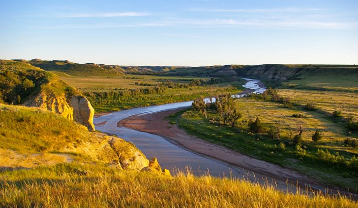 <Những con sông uốn khúc dài ở Bắc Dakota cắt qua đồng bằng và hẻm núi.