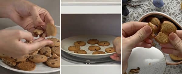 5. Làm bánh quy giòn trở lại Bánh quy để lâu sẽ bị ẩm và mềm ra. Hãy làm nóng bằng lò vi sóng khoảng 10 giây sẽ giúp bánh giòn trở lại. Bánh bị mềm có thể làm nóng bằng lò vi sóng để giòn trở lại. 6. Làm mềm đậu Các loại đậu thường phải ngâm nước vài tiếng mới mềm ra được, lò vi sóng có thể làm mềm hạt đậu nhanh chóng hơn. Ngâm đậu trong nước rồi đun nóng trong lò vi sóng khoảng 10 phút, để nguội là có thể dùng để nấu ăn. Làm nóng bằng lò vi sóng sẽ khiến hạt đậu mềm ra.